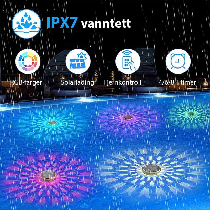 Perfekt landskapsdekorasjon: I tillegg til lysfunksjonen, forbedrer den solcelledrevne flytelykten det generelle utseendet til uteområdet ditt, og tilfører et vakkert og unikt preg til hager, dammer og svømmebassenger, og gjør det til den perfekte utendørs dekoren.