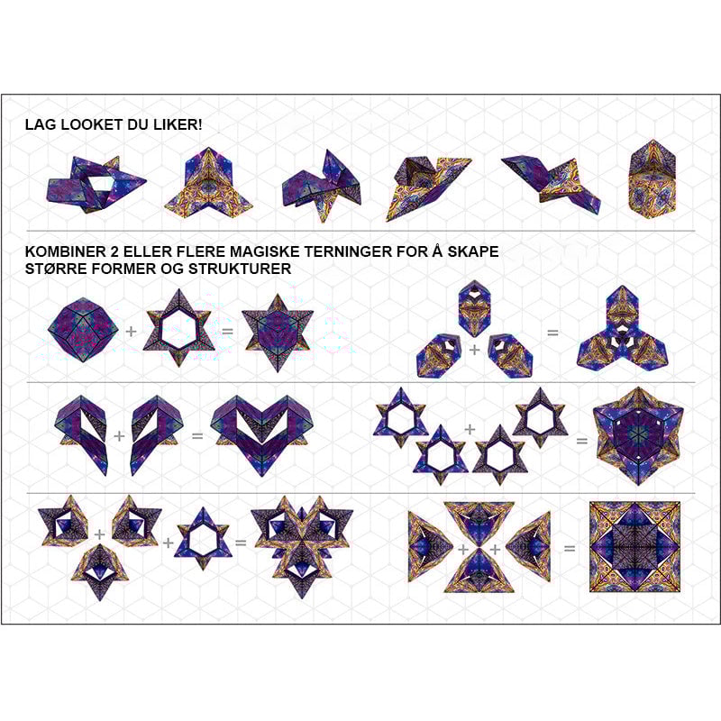 1 kube forvandles til over 70 former. Kombiner 2 eller flere kuber for å bygge større former og skape flere muligheter. Kan du mestre formskiftingskuben?