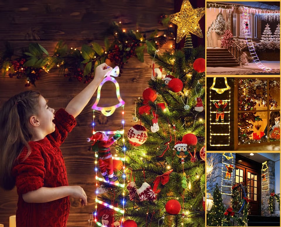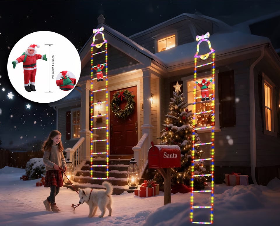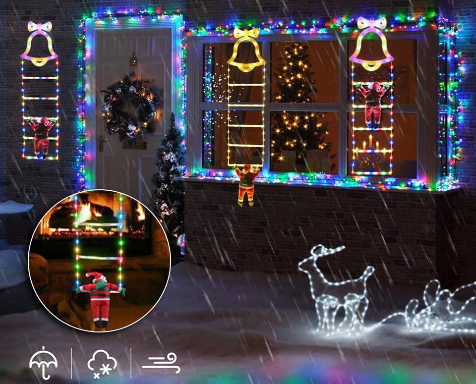 "Oppdag våre jule-stige-dekorasjonslys med Julenissen—festlige farger & varm glød, 8 lysmoduser, værbestandig & enkel montering for øyeblikkelig feriemagi!"