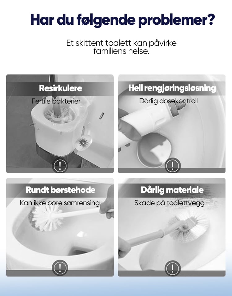 Rengjør med mindre innsats, hold deg unna toalettflekker, ikke skitne hender