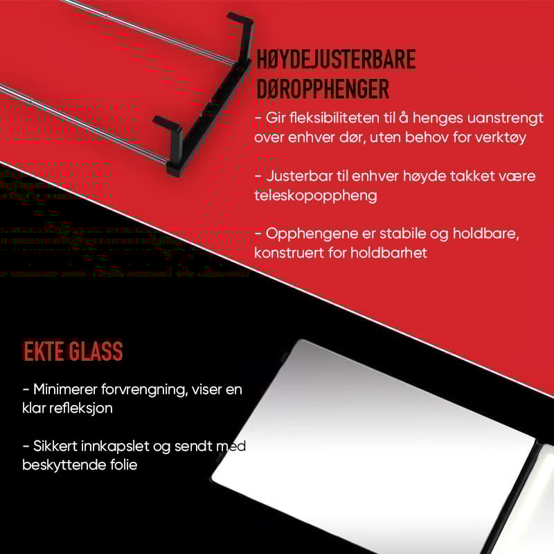 🚪 Lett å henge opp hvor som helst: Utvidbare, teleskopiske kroker gjør det enkelt å henge speilet over enhver dør. Juster høyden raskt etter din smak for en komfortabel og håndfri opplevelse.