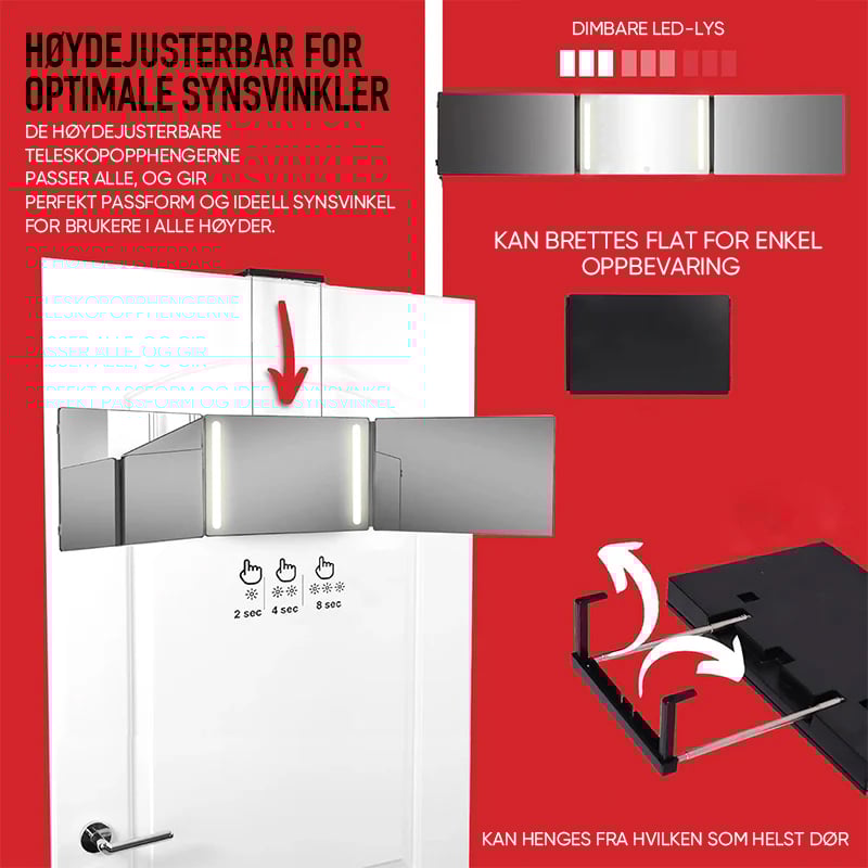 Det har aldri vært enklere å se best mulig ut! Enten du trimmer håret, styler antrekket ditt eller sjekker alle vinkler for den perfekte finishen, har dette 3-veis speilet det du trenger.