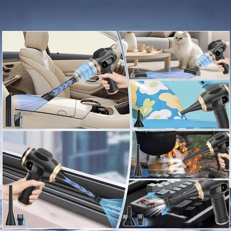 - 【LUFTSTØVER OG STØVSUGER I ETT】 Du kan enkelt bruke den til å blåse bort smuss, rusk, støv og andre partikler fra overflaten på gjenstander, samt suge ut små gjenstridige partikler som er skjult i tastaturer, kroker og kriker. Støvsuger på forsiden og blåser på baksiden. Vær oppmerksom på at de forskjellige dysene korresponderer med de forskjellige tilkoblingene på forsiden og baksiden av støvsugeren.