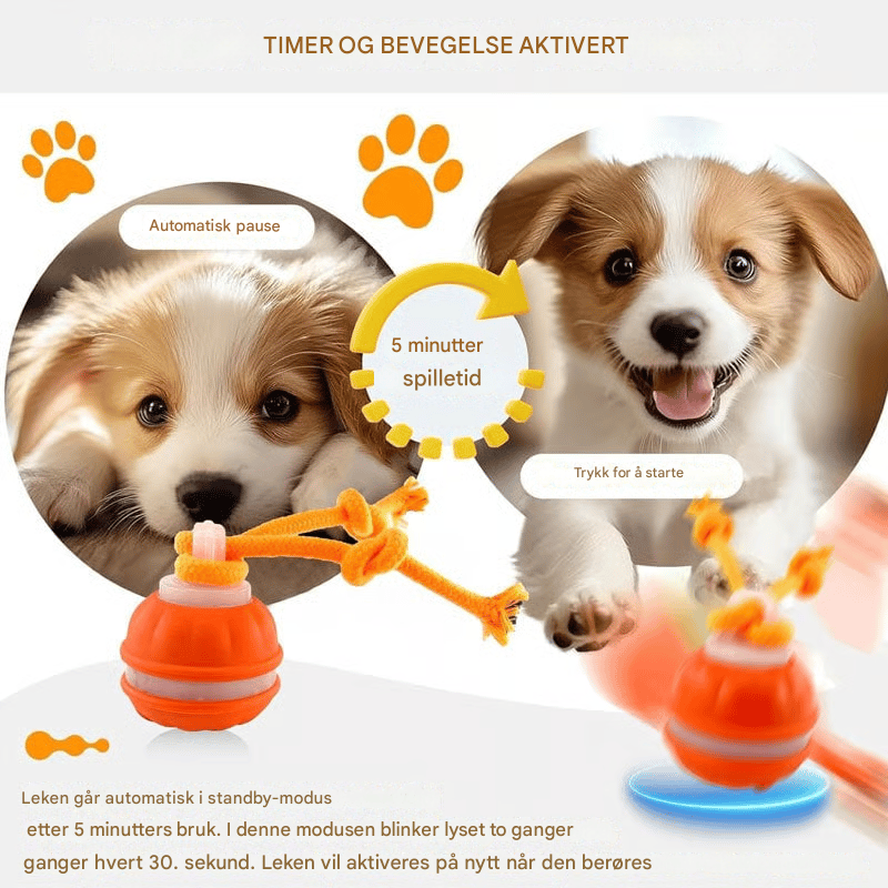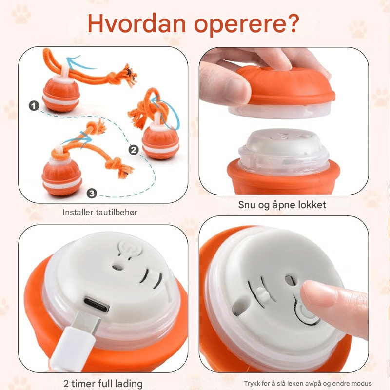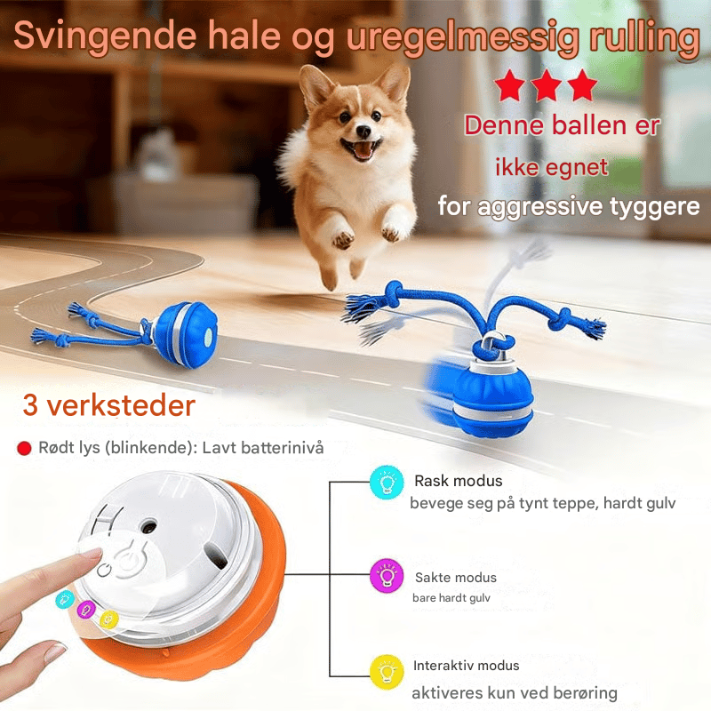 Denne Smarte Rullende Kjæledyrballen beveger seg tilfeldig, tåler trekking og har 3 morsomme moduser — med intelligent hindringsunngåelse.