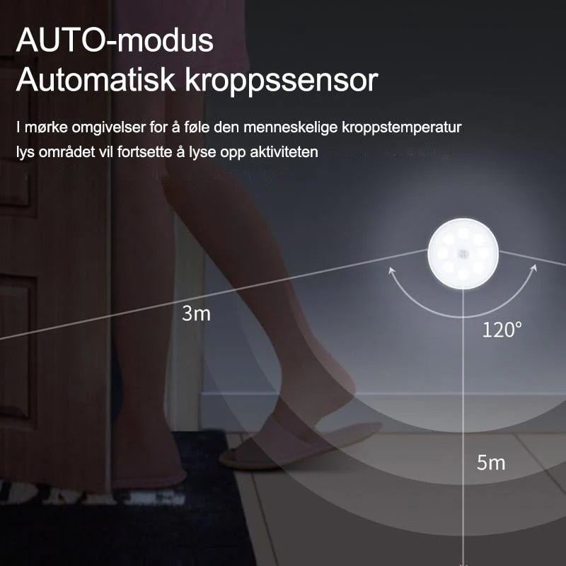 Allsidig design: Perfekt for korridorer, skap, trapper osv., og øker sikkerhet og bekvemmelighet.
